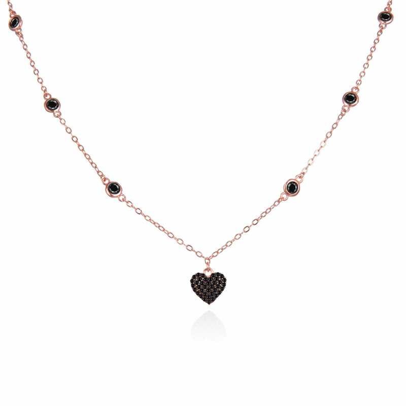 Stylový náhrdelník od značky Agato přináší dokonalou kombinaci elegance a kvality. Vyrobený z ryzího stříbra 925/1000 a pozlacený růžovým zlatem, tento šperk zaujme přívěskem ve tvaru srdce, ozdobeným třpytivými černými zirkony. Délka náhrdelníku je nastavitelná od 42 cm s možností prodloužení o...