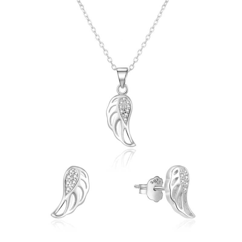 Stříbrná souprava šperků andělská křídla AGSET64RL (náhrdelník, náušnice) Beneto
