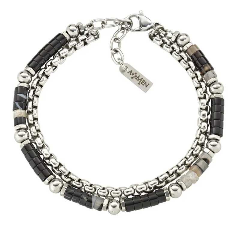 Dvojitý pánský náramek s achátem ACBR2BBNGR Amen