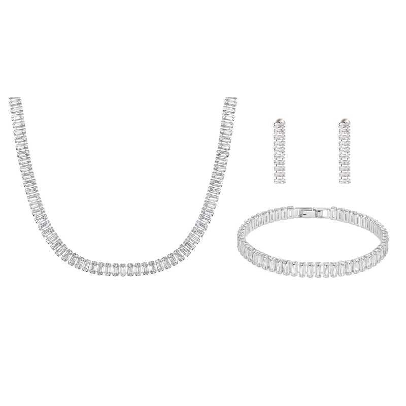 Dámská sada tenisových šperků s čirými krystaly (náhrdelník, náramek, náušnice) Troli