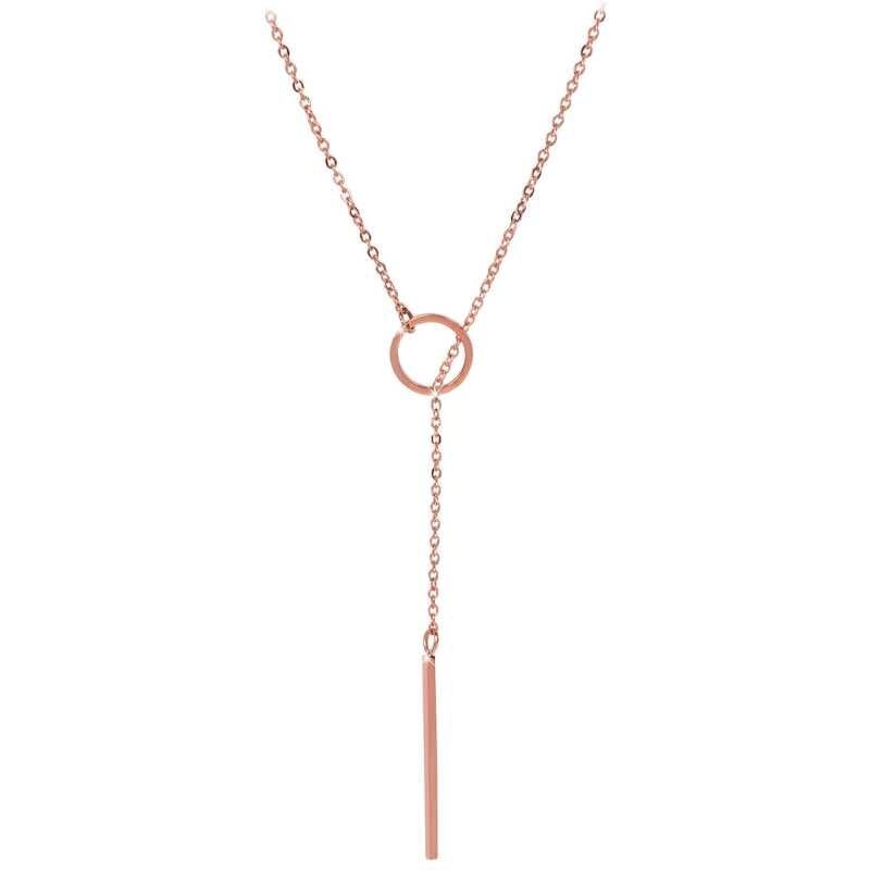 Náhrdelník Troli, vyrobený z kvalitní růžově pozlacené oceli, přináší do vašeho šperkového arzenálu unikátní eleganci. Jeho rafinovaný přívěsek, který se provléká kroužkem, vytváří poutavý a moderní vzhled. S rozměry platformy 3 x 0,1 x 0,1 cm a průměrem kroužku 1,2 cm, tento šperk dokonale zdobí...