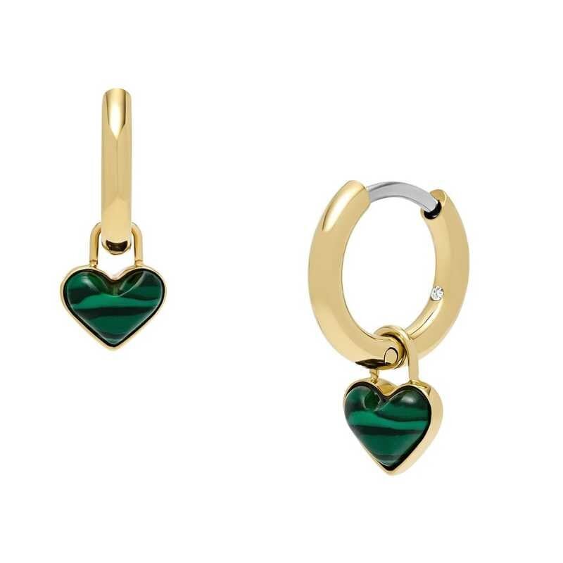 Elegantní náušnice 2v1 od značky Fossil jsou dokonalým spojení stylu a versatility. Vyrobené z kvalitní oceli a pozlacené zlatým PVD povlakem, kombinují nadčasové kruhy s půvabným srdíčkovým přívěskem z malachitu. Přívěsek lze snadno odepnout, což umožňuje přizpůsobit šperky různým příležitostem....