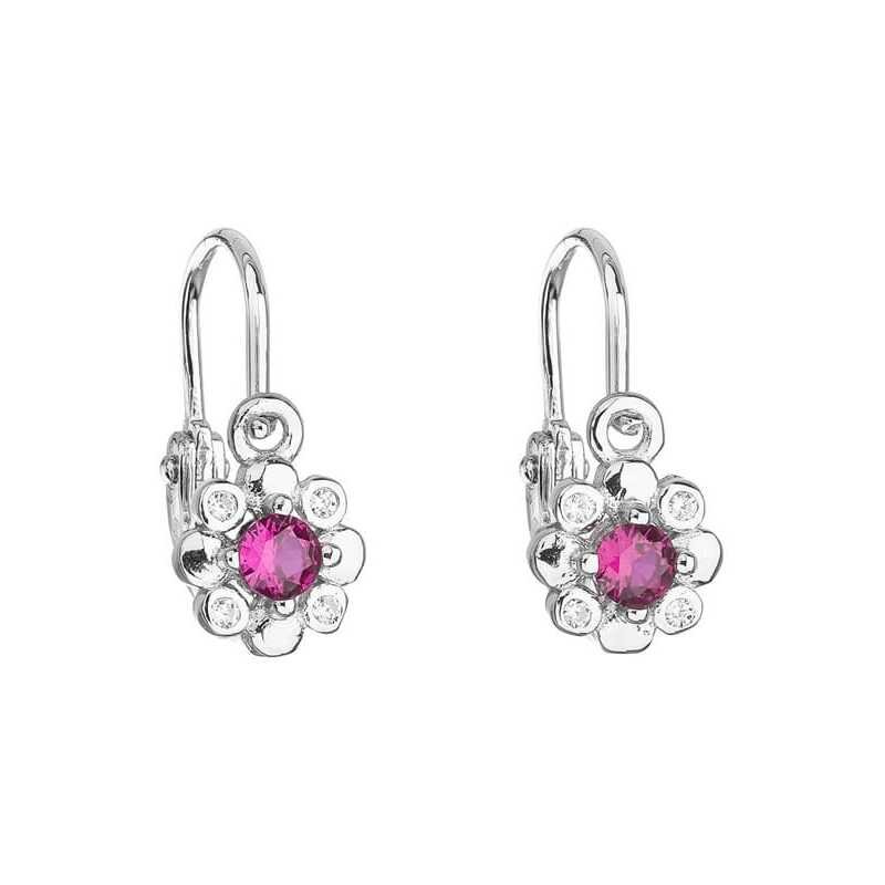 Stříbrné dětské náušnice s růžovými zirkony 11174.3 Evolution Group