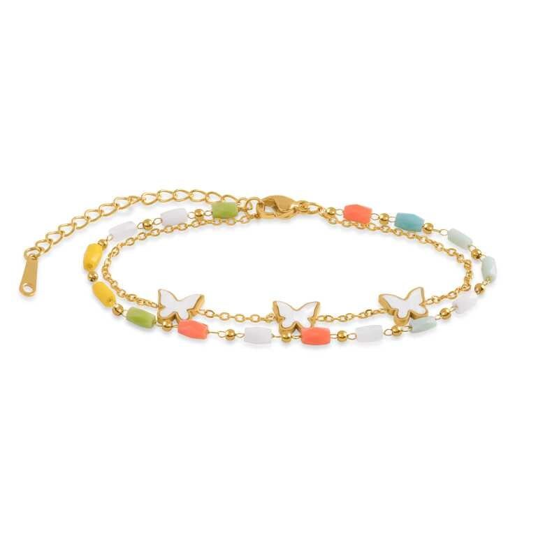 Pozlacený náramek s barevnými korálky a motýlky Troli