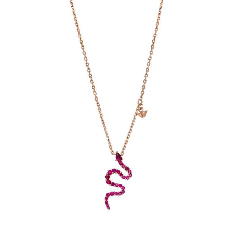 Dámský pozlacený náhrdelník Had s fuchsiovými zirkony EG3613221 Emporio Armani