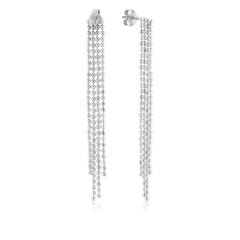 Elegantní dámské náušnice značky Troli jsou vyrobeny z vysoce kvalitní oceli, což zaručuje jejich trvanlivost a odolnost. S délkou 5,5 cm a čtyřmi kuličkovými řetízky přitahují pozornost a dodávají každému outfitu šmrnc. Bezpečnostní zapínání na puzetku zajistí, že zůstanou na svém místě. Ozdobte se těmito stylovými šperky a podtrhněte svou jedinečnost.