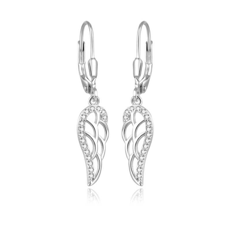 Elegantní stříbrné náušnice s čirými zirkony Andělská křídla AGUC2585L Beneto