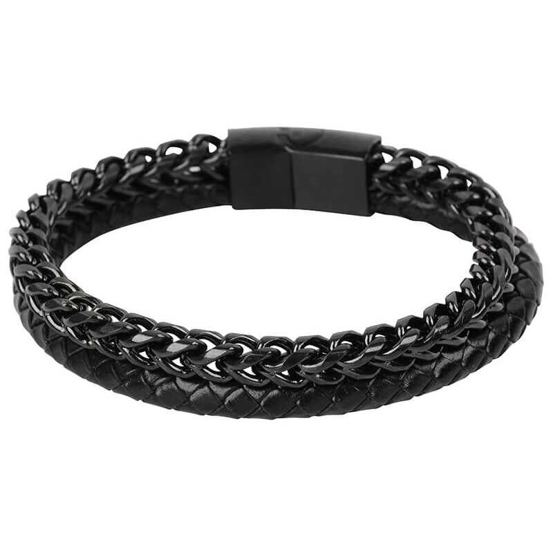 Pánský náramek Troli kombinuje eleganci s odolností díky kvalitní ušlechtilé oceli. Proplétaný kožený pruh dodává šperku unikátní charakter, zatímco černá PVD úprava oceli zajišťuje moderní vzhled. Pevný magnetický uzávěr garantuje snadné nošení a bezpečné zapnutí. Tento náramek je ideálním doplňkem pro každého muže, který hledá stylový a nadčasový šperk, jenž oživí jeho zápěstí.
