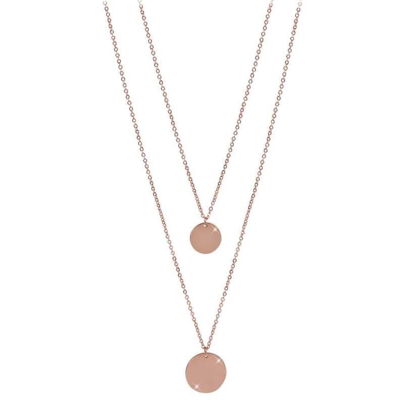 Dvojitý náhrdelník s kruhovými přívěsky z růžově pozlacené oceli Troli
