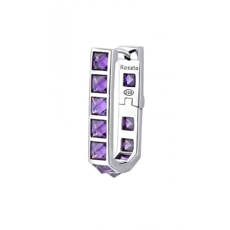 Stylová single náušnice od italské značky Rosato přináší do vašeho šperkovníku šmrnc a eleganci. Vyrobena z kvalitního stříbra a poseta fialovými kubickými zirkony, okouzlí vás svým jedinečným designem drobných čtverců. Délka 2,5 cm a bezpečnostní zapínání zaručují pohodlné nošení bez obav z...