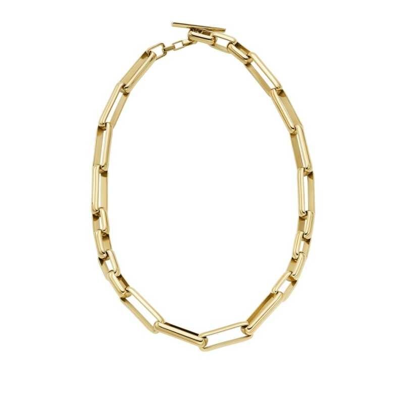 Dámský náhrdelník značky Fossil je dokonalým doplňkem pro každou příležitost. Je vyroben z kvalitní mosazi s elegantním zlatým PVD povlakem, který mu dodává luxusní vzhled. Velké oválné články o délce 45,5 cm příjemně obepínají krk a díky americkému zapínání se snadno nasazuje. Tento šperk se stane výrazným prvkem vašeho outfitu a podtrhne vaši osobnost.