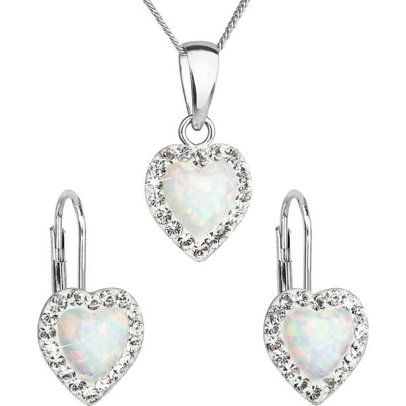 Srdíčková souprava šperků s krystaly Preciosa 39161.1 & white s.opal (náušnice, řetízek, přívěsek) Evolution Group