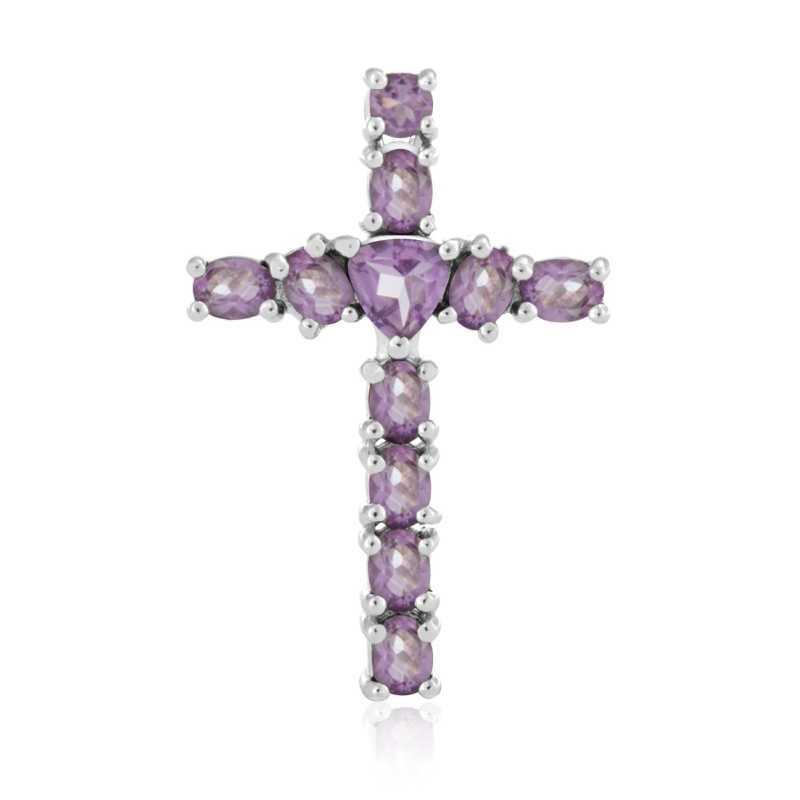 Stříbrný přívěsek s ametystem Křížek AMEAGH1 Beneto Exclusive