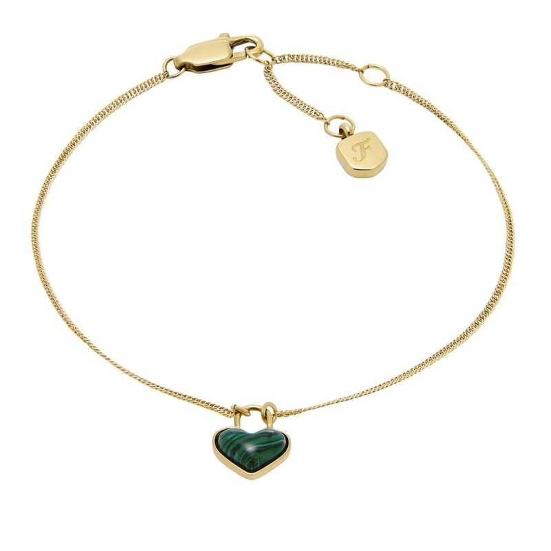 Pozlacený náramek Malachitové srdce Modern Meadows JF04858710 Fossil