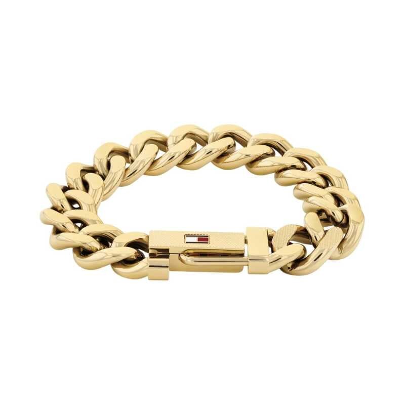Elegantní náramek značky Tommy Hilfiger spojuje kvalitu a styl. Vyrobený z prémiové oceli a pokovený luxusním zlatým PVD povlakem, nabízí odolnost a dlouhou životnost. Propojená oválná očka v šířce 1,5 cm vytvářejí působivý design, který doplňuje smaltované logo značky. S délkou 19 cm a...