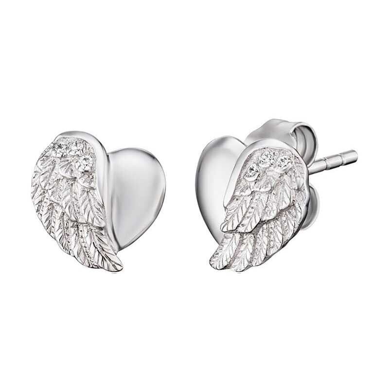 Stříbrné náušnice Srdce s andělským křídlem a zirkony ERE-LILHW-ST Engelsrufer