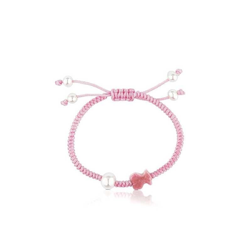 Elegantní náramek značky Tous je dokonalým doplňkem pro každou příležitost. Je vyroben z pletené růžové šňůrky, která zajišťuje komfortní nošení, a jeho výrazný přívěsek ve tvaru medvídka z rodonitu dodává šperku jedinečný charakter. Pět kultivovaných perl je vkusně umístěno na náramku, což...