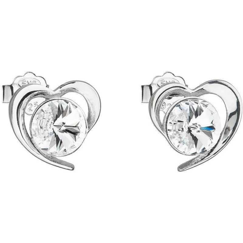 Stříbrné náušnice s krystaly Swarovski bílé srdce 31259.1 Evolution Group