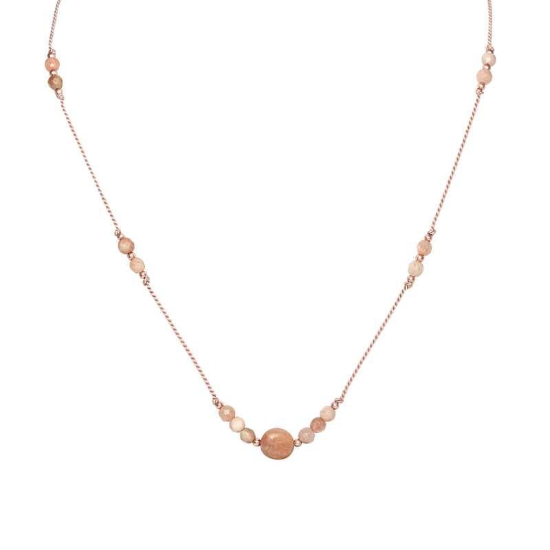 Elegantní náhrdelník značky Agato spojuje jemnost hedvábné šňůrky s krásou korálků ze slunečního kamene a růžově zlacené oceli. Délku náhrdelníku lze snadno přizpůsobit dle potřeby, což zajišťuje maximální komfort při nošení. Sluneční kámen, známý jako „kámen radosti“, prozáří váš den pozitivní...