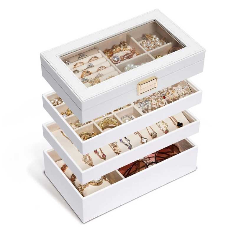 Elegantní organizér na šperky značky Troli je ideálním řešením pro každou moderní ženu, která ocení jak design, tak praktičnost. Tento variabilní kousek se čtyřmi stohovatelnými zásuvkami nabízí prostor pro prsteny, náhrdelníky, náramky i hodinky. Vyroben z ekologického MDF a potažen krémově...