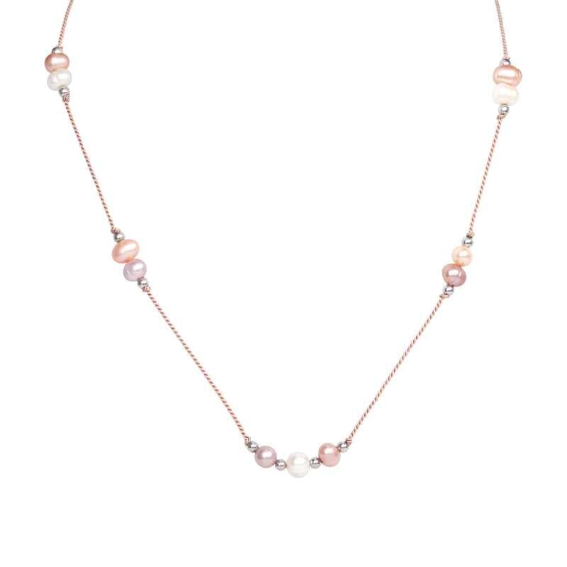 Elegantní šňůrkový náhrdelník značky Agato spojuje nadčasovou krásu s moderním designem. Na hedvábné růžové šňůrce jsou umně navlečeny ocelové korálky a sladkovodní perly v jemných odstínech růžové, lososové a bílé. Délku náhrdelníku lze snadno přizpůsobit od 32 cm do 60 cm pomocí posuvné spony....