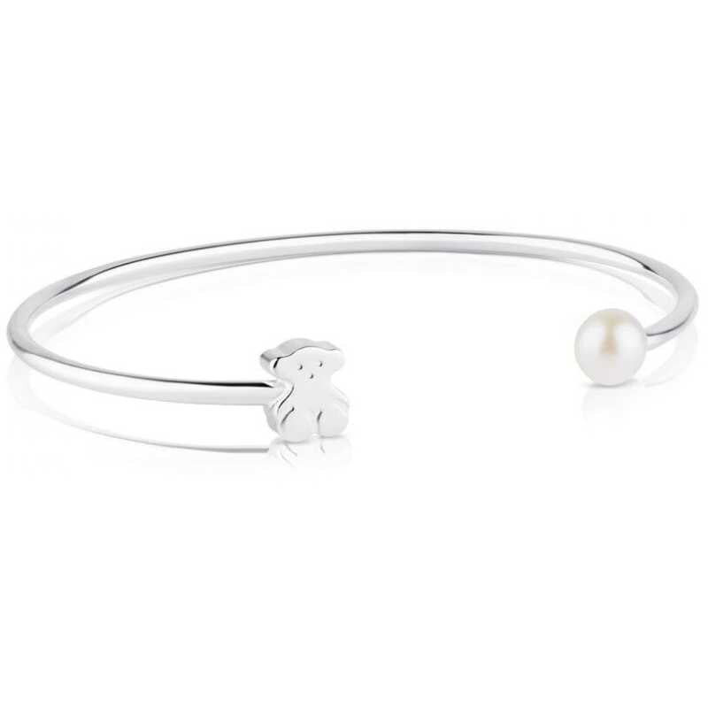 Pevný stříbrný náramek s medvídkem a perlou 515911500 Tous
