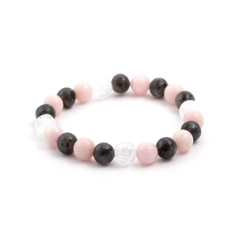 Náramek z minerálních korálků od značky Agato přináší spojení elegance a pozitivní energie. Složen z růžového jadeitu, šedého labradoritu a praskaného křišťálu, skvěle doplní každý outfit. Pružná gumička zajišťuje pohodlné nošení, zatímco jadeit přitahuje lásku a prosperitu. Labradorit posiluje...