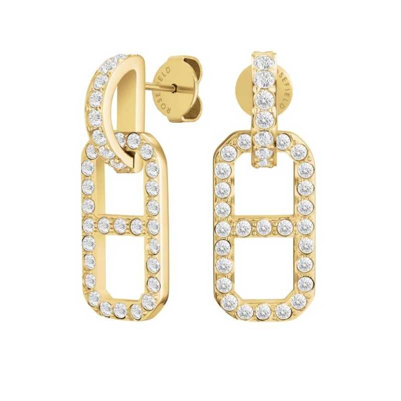 Elegantní náušnice značky Rosefield jsou dokonalým doplňkem pro každou příležitost. Vyrobené z kvalitní oceli a pozlacené žlutým zlatem, přinášejí nadčasový vzhled s moderním nádechem. Osmihranná visací ozdoba je zdobena čirými krystaly, které náušnicím dodávají nádherný třpyt. S klasickým zapínáním na puzetku se snadno nosí a stávají se stylovým a šik kouskem ve vaší šperkovnici.