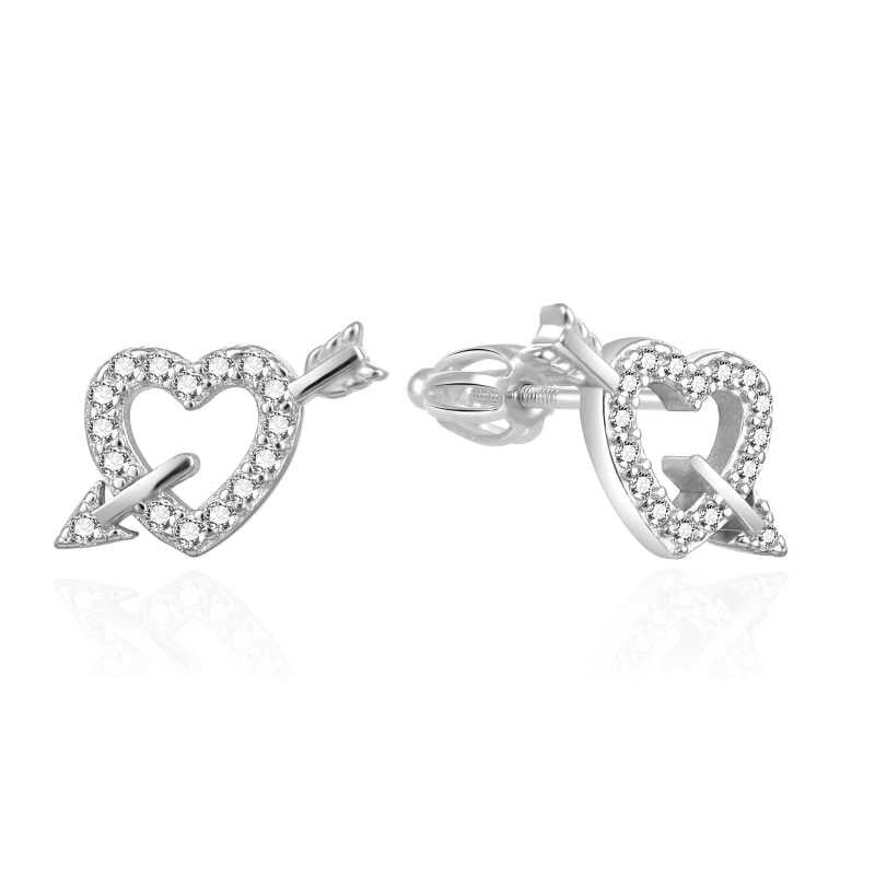 Stříbrné náušnice se zirkony Srdce s šípem AGT-E104SW Agato