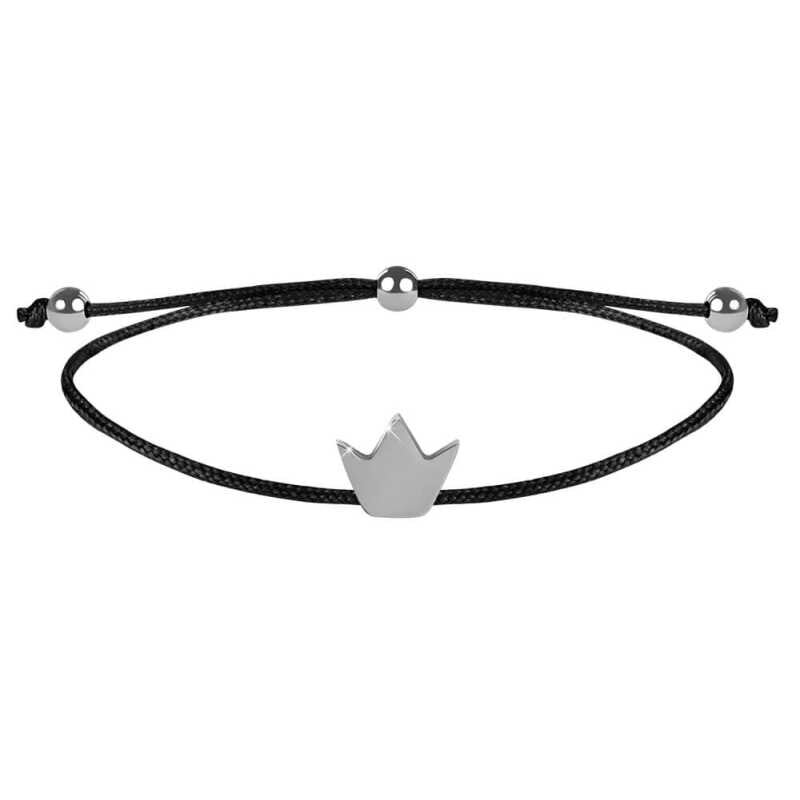 Šňůrkový náramek Korunka černá/ocelová Troli