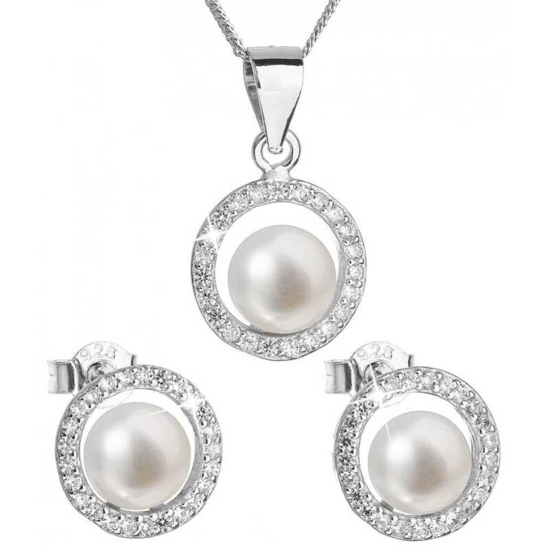 Luxusní stříbrná souprava s pravými perlami Pavona 29023.1 (náušnice, řetízek, přívěsek) Evolution Group