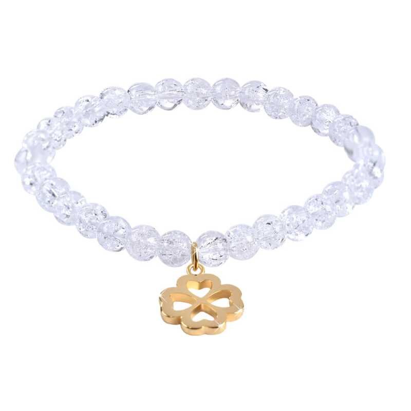 Korálkový náramek z popraskaného křišťálu se čtyřlístkem Troli / Délka: 18 cm
