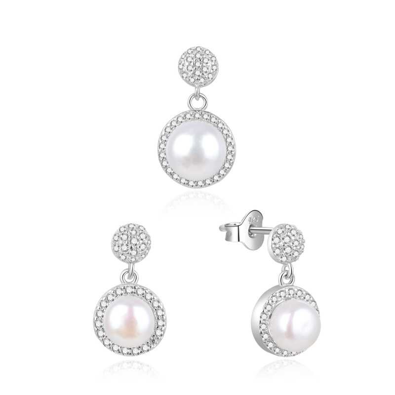 Stříbrná souprava šperků ze stříbra s pravými perlami AGSET205P (přívěsek, náušnice) Beneto