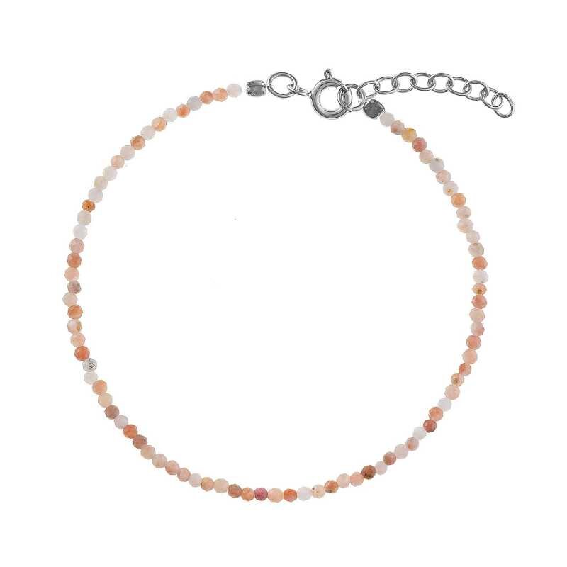 Elegantní náramek od značky AGAIN Jewelry spojuje bílo-oranžové korálky měsíčního kamene s kvalitním stříbrem. Rhodiovaný povrch zajišťuje nízkou pravděpodobnost alergických reakcí a trvalý lesk. S délkou 17 cm a možností prodloužení o 3 cm se skvěle přizpůsobí každému zápěstí. Tento šperk s klasickým zapínáním na karabinku dokonale doplní váš outfit a dodá mu šarm.