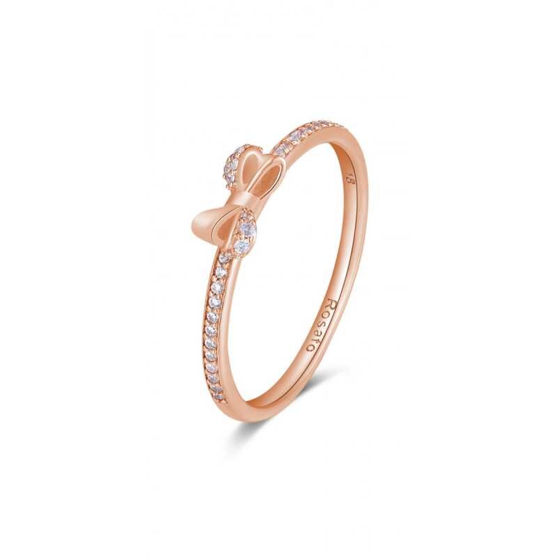 Elegantní prsten značky Rosato přináší dokonalou kombinaci kvalitního stříbra a jemného růžového zlata. Tento exkluzivní kousek s detailně propracovanou mašlí je osazen třpytivými kubickými zirkony, které dodávají šperku oslnivý vzhled. Jeho lehkost zajišťuje pohodlné nošení po celý den. Tento prsten je ideálním módním doplňkem pro každou příležitost a podtrhne vaši osobnost.
