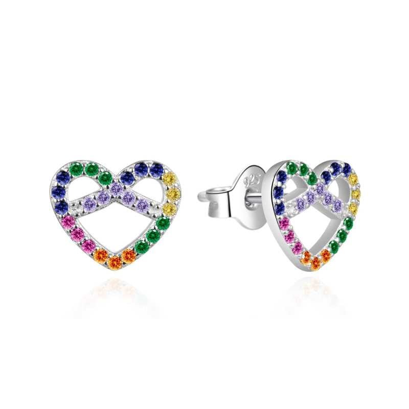Srdíčkové stříbrné náušnice s barevnými zirkony AGT-E173PC Agato