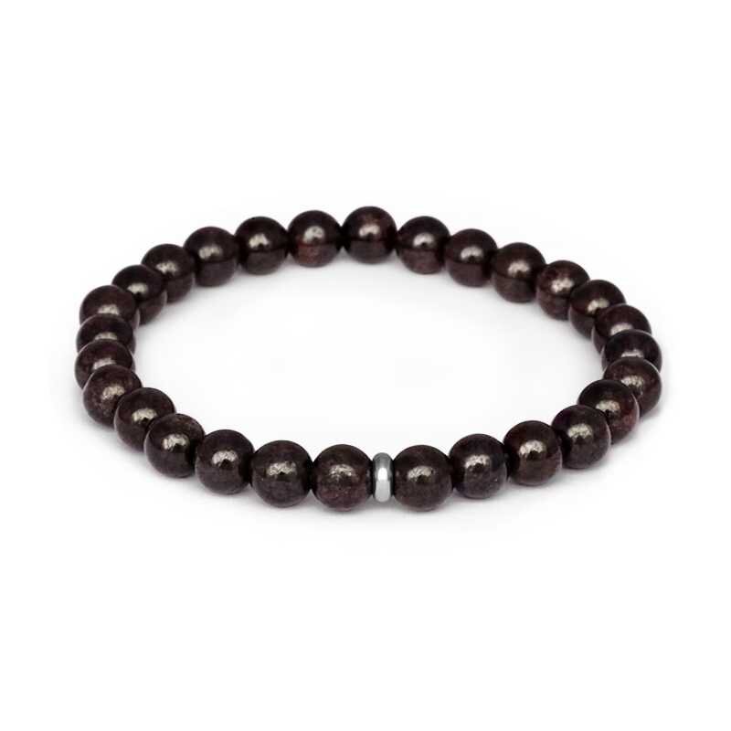 Náramek z granátu od značky Agato je dokonalým spojencem pro každodenní nošení. Tmavé korálky dodávají šperku elegantní vzhled, zatímco ocelový kroužek umocňuje jeho nadčasovost. Díky pružné gumičce se náramek přizpůsobí každému zápěstí a zajistí komfort po celý den. Granát, známý svými léčivými...