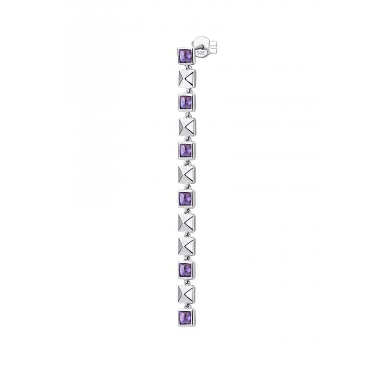 Dlouhá stříbrná single náušnice se zirkony Cubica RZCU80 Rosato