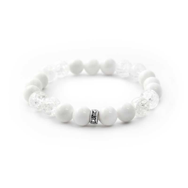 Elegantní náramek od značky Agato spojuje krásu a terapeutické vlastnosti minerálních korálků. S bílými jadeitovými a čirými křišťálovými korálky, doplněný ocelovým detailem, je tato šperková ozdoba nejen stylovým doplňkem, ale i zdrojem pozitivní energie a harmonie. Pružná gumička zajišťuje...