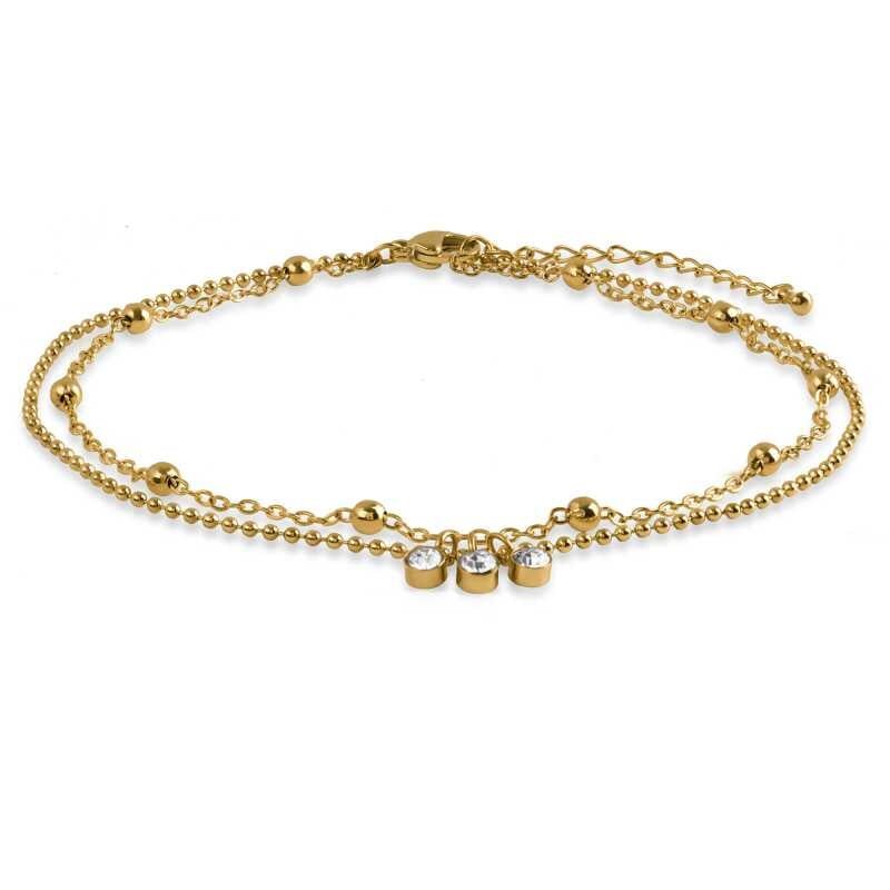 Dvojitý pozlacený náramek na nohu se zirkony Troli