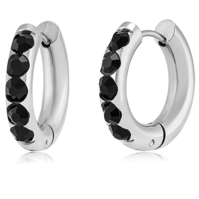Moderní kruhové náušnice s černými zirkony VAAJDE201822S-BK Troli