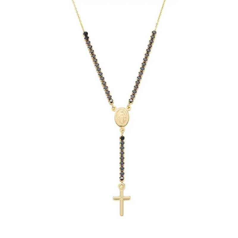 Jedinečný pozlacený náhrdelník s černými zirkony Rosary CLCRMIGNZ4 Amen