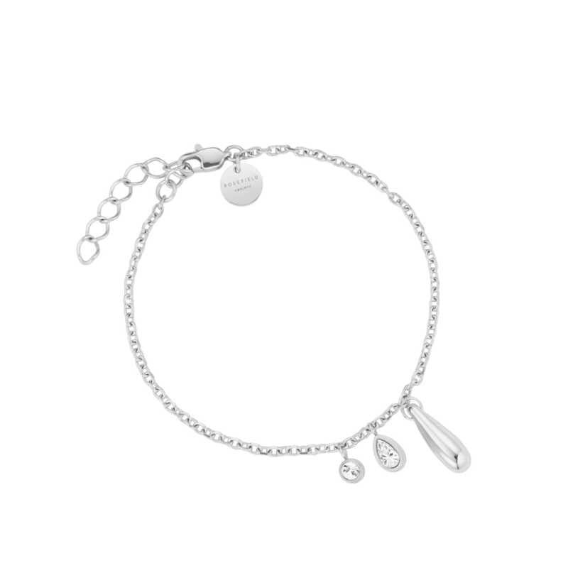 Elegantní náramek značky Rosefield je ztělesněním moderního designu a kvality. Vyroben z odolné oceli, zaujme tři visící přívěsky, z nichž dva jsou okrášlené třpytivými čirými krystaly. S délkou 16,5 cm a možností prodloužení o 3 cm se dokonale přizpůsobí každému zápěstí. Bezpečnostní karabinka...