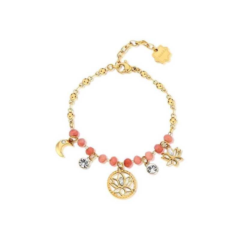 Půvabný pozlacený náramek s korálky a přívěsky Chakra BHKB137 Brosway