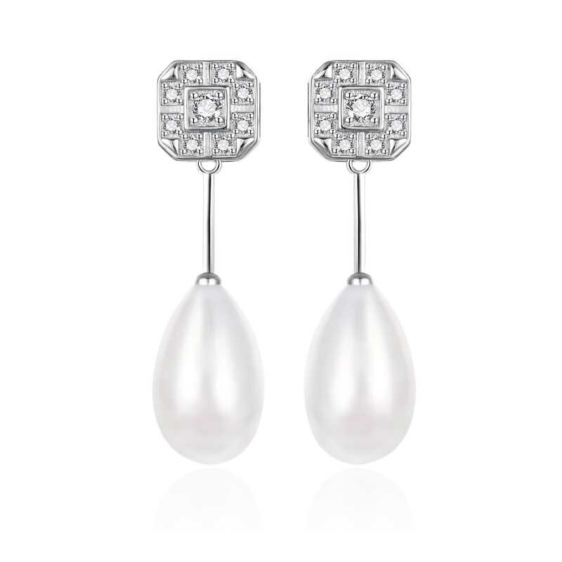 Stříbrné visací náušnice se zirkony a perlou AGT-E095PW-P Agato