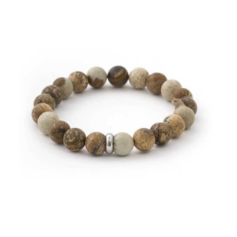 Elegantní dámský náramek značky Agato přináší spojení minerálních korálků a oceli s originálními obrazkovými jaspisy. Díky pružné gumičce se pohodlně nosí a skvěle doplní jakýkoliv outfit. Jaspis, známý jako "matka všech kamenů", má ochranné a léčebné vlastnosti, podporuje soustředění a vyrovnanost. Vsaďte na šperk, který nejen vypadá skvěle, ale také posiluje zdraví a pohodu.