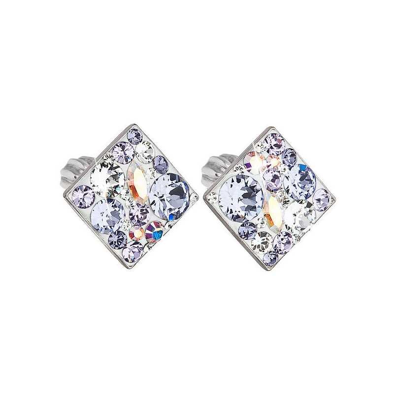 Slušivé čtvercové náušnice s krystaly Violet 31169.3 Evolution Group