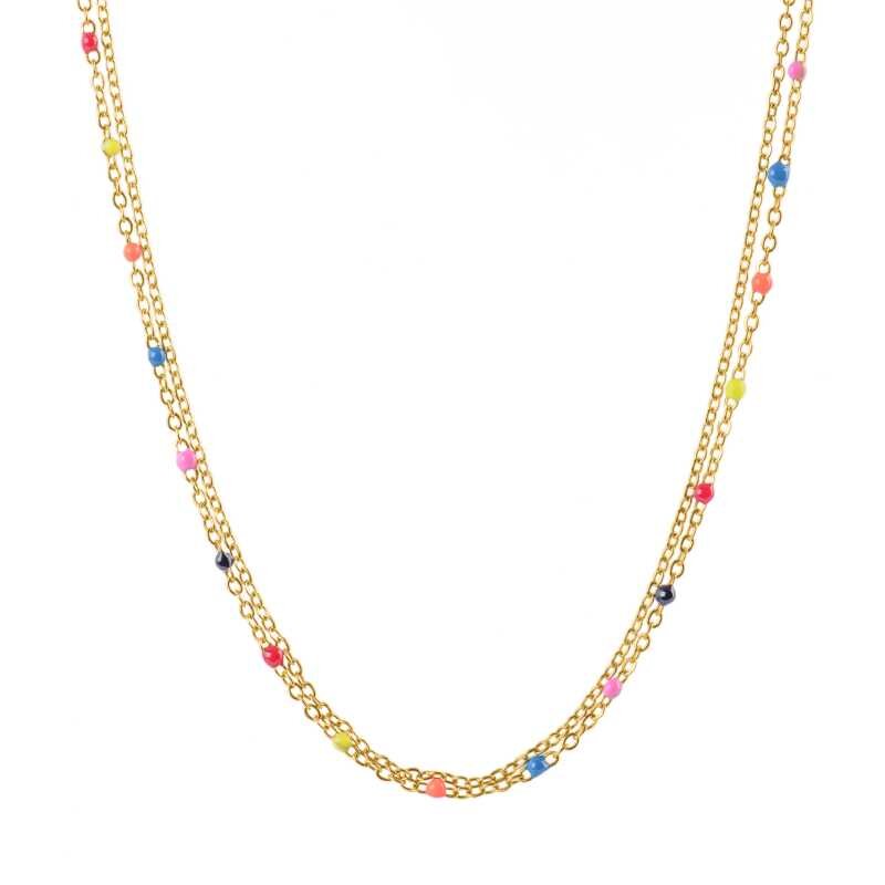 Pozlacený dvojitý náhrdelník se smaltovými korálky Troli