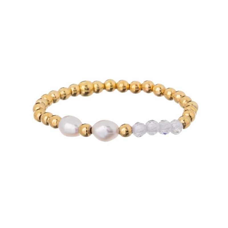 Pozlacený korálkový prsten s pravou perlou AL4815-Oro Alisia / Obvod: 53 mm - 53 mm