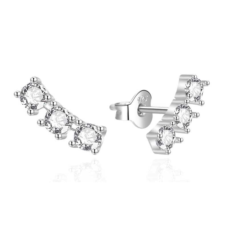 Podélné náušnice značky Agato jsou dokonalým spojením elegance a moderního designu. Vyrobené ze stříbra o ryzosti 925/1000 a s rhodiovaným povrchem, tyto šperky minimalizují alergické reakce a zajišťují dlouhotrvající lesk. Tři čiré zirkony přidávají náušnicím jiskru, zatímco jejich tvar dokonale...
